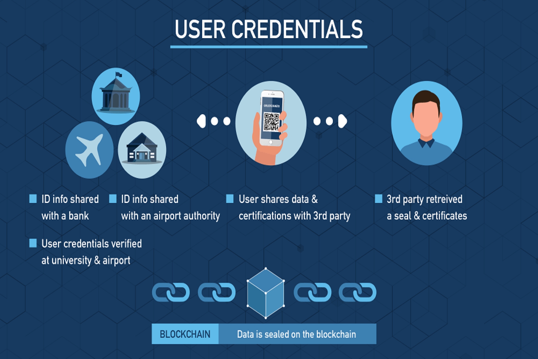 We can eleiminate verification at multiple stages using Blockchain and hence saving time at multiple checkpoints.